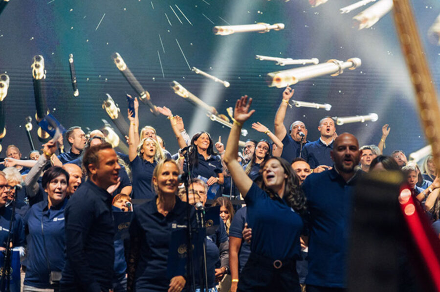 The campaign was accompanied by a cross-media rollout. The song was performed and recorded again at the international sites by voluntary brand ambassadors, to then be integrated into the final video. The aim was to anchor the message “People. Power. Passion.” worldwide – combined with digital content and employer branding initiatives. The anniversary year culminated in the publication of the collective music video.