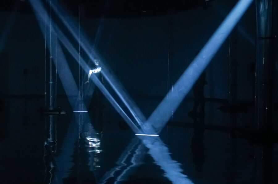 The journey begins in Ross Island off the Antarctic continent, leads along the great ocean currents, and ends in the icy waters of the Arctic. Along the way, the ice cracks, seals call, you hear the song of whales and the drumming of tiny crustaceans. But the harsh sounds of a ship’s engines are also mixed into the concert, introducing disharmonies caused by noise pollution. The sound art, presented in spatial 360-degree ambisonic acoustics, is accompanied by a fluid light production that transforms the play of light and color in the oceans in a painterly way and seems to dissolve the boundaries of space.